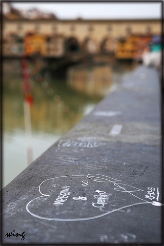 阿诺河边护栏上情侣们精力下的各种爱的涂鸦