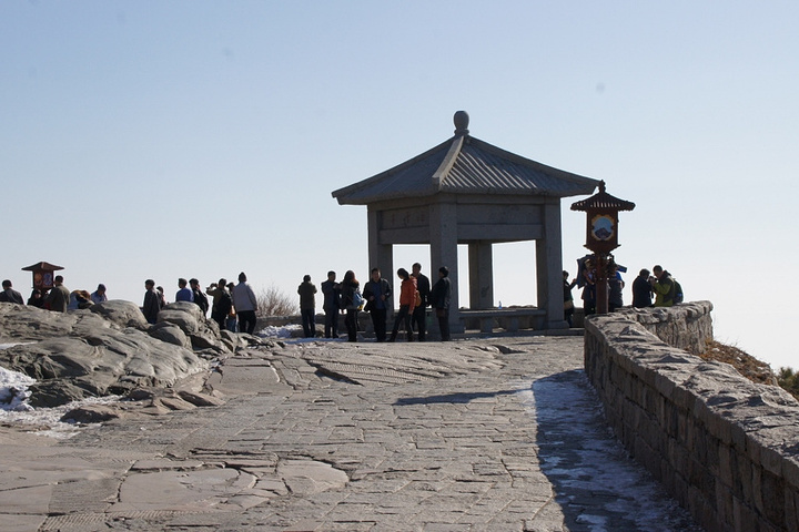 当然,你若是到泰山观看日出,那最好就上日观峰了。观日出的最佳地点,但是除了日出之外,景色也不错,视野很广阔,群山尽在眼底,日观峰处,地势相对平坦,甚至还可以做个临时机场的。在那里,康熙帝留了“如果”两字。我想:如果我夜爬泰山,或是当晚住在泰山顶上,我就可以看到日出了。因为,我实在喜欢旭日东升那一刻的期待、惊喜,还有雀跃。 虽然这样的心情,我在黄山就曾经历过。但在那天,我站在那里,我多少还是有些失落的。