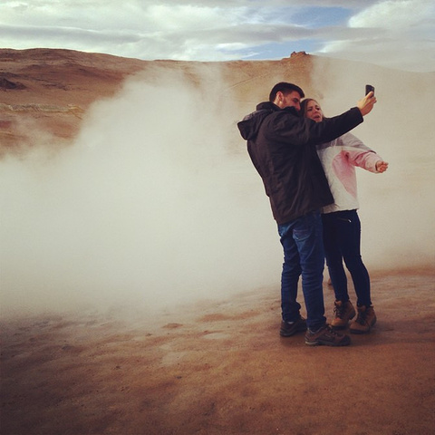 【环驾冰岛• 无处不在的爱情】见惯了海岸边明月下松林中的甜言蜜语,在这里,第一次听见异国情侣在色彩斑斓的臭鸡蛋味环绕中海誓山盟。