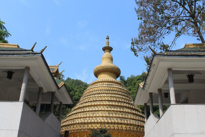 下一站我们前往的是萧山南宋官窑艺术馆,是展览中国陶瓷工艺美术大师叶国珍教授作品的一个专业展馆。既有老的南宋官窑,也有叶大师亲自制作的仿制南宋官窑瓷器,叶大师的作品在拍卖市场上单件创下了五十多万的纪录。一到下一个目的地东方文化园,就听到了阵阵梵音,原来每天十点半,“观音显圣”这处景观就启动了“梵乐喷泉”,“观音圣像”缓缓上升至山顶,雾气喷出,亦真亦幻,犹如观音菩萨踏着祥云现身人间,为世人恩赐圣水、普渡众生。看到很多信众在地上磕头,我也合上双掌,默默祈祷,愿家人平安。穿过几进宝殿后,来到了后面的地宫,进地宫发现,天花板上全是一个个金佛,万佛升天也许就是这种景象吧,地宫里的铭文都是用黄金刻就的,地砖也是金砖。