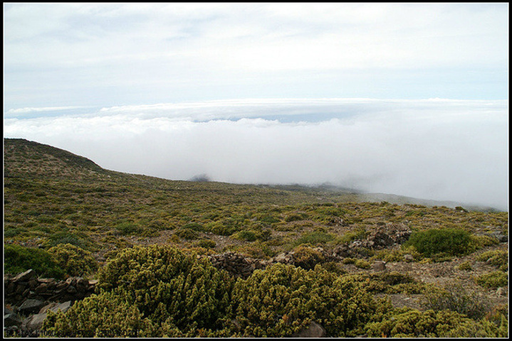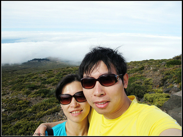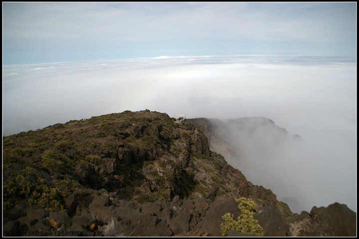 后来我们不满足于单一角度,继续往高处爬了 回头看看那个小白棚,就是建议游览者观赏的地方 我们则走了离它很远很远的地方。 四周依然是云海