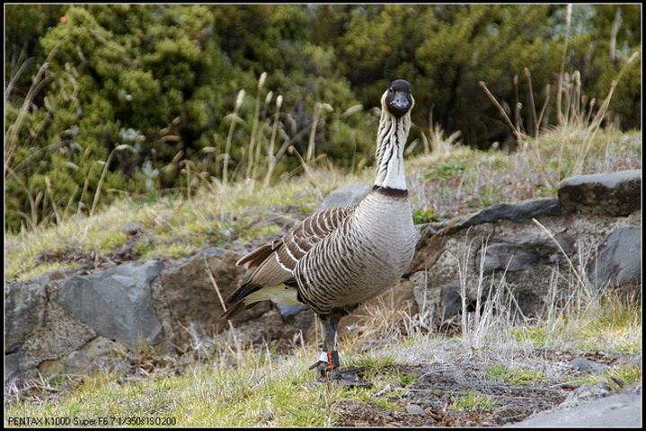 夏威夷物种繁多,也是全世界濒危物种最多的地方。听说原先夏威夷的好多物种都是从外边引进的。公元400年,波利尼西亚人进入夏威夷,带来鼠、犬、猪。1778年欧洲人带来了猫、马、牛、山羊。这些新鲜物种的入侵,再加上人类愚蠢的砍伐,夏威夷原生的物种遭了殃。原先67种本地鸟,有23种已经灭绝,30种濒临灭绝。大名鼎鼎的太平管舌鸟、夏威夷绿鸟等都已灭绝,夏威夷独有的一种婆欧里鸟,只剩三只了。作为夏威夷州鸟的夏威夷雁,也叫夏威夷鹅。这种鸟的名字叫“内尼”,人们通过严格的保护法和人工喂养,才把它从濒危状态挽救回来。大概有500只。 看完这段,我和小F说,我们有幸看到了那五百分之二 也就是二百五十分之一