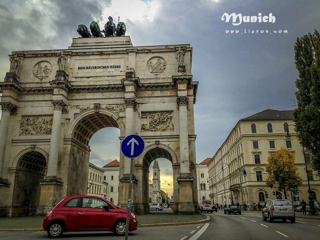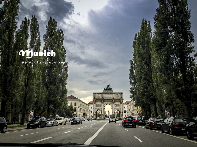 路过慕尼黑凯旋门,手机瞬抓,一路开过的感觉很像是缩小版的香榭丽舍大道
