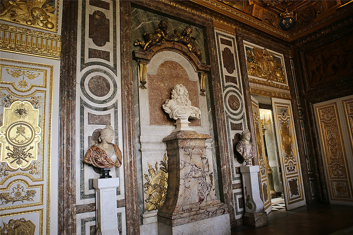 大理石院和镜厅是其中最为突出的两处,除了上面讲到的室内装饰外,太阳也是常用的题目,因为太阳是路易十四的象征。