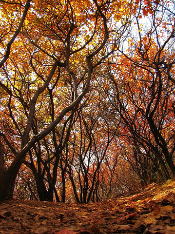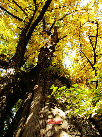 红螺寺位于北京市区的东北方向,距北京市区55公里,距怀柔城区4公里。总面积800公顷,为国家4A级旅游景区。东直门外长途客运站从7点开始每半小时有发往红螺寺的867路公交车直达景区,票价13元。红螺寺门票40元/人,红螺寺整个景区还是挺大的,其实人家收40块钱也有道理,加上红叶也真的不错。 “山明水净夜来霜,数树深红出浅黄”。红螺寺始建于东晋时期,是北京地区建造年代最早的名寺。进入山门不久,即可到达。寺内两株1100年树龄的高大银杏满树金黄,独木成林,令人叹为观止。顺红螺寺东侧门沿山路上行,抵达观音寺,之后登上红螺山,感受漫山遍野的层林尽染。正可谓“万花都落尽,树树秋叶烧”。 红螺寺景区游人较少,属于红叶观赏期间难得的一个清静地,可以慢慢地走,慢慢欣赏,随心所欲,好不自在。