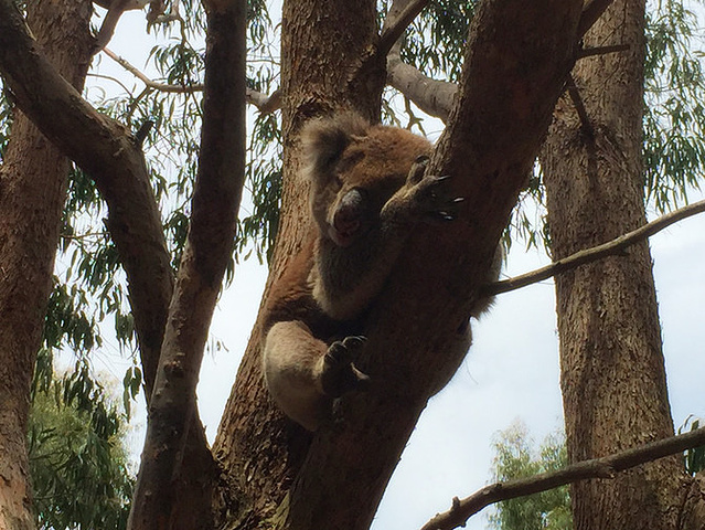 一小时午餐之后,我们就去Hanson bay。看野生的考拉,因为我们在大洋路见过了很多很多野生的考拉,所以没有太多的兴奋,不过这边有只肉肉的考拉睡在很低的地方,伸手就可以摸到他。超级可爱。为了不影响他睡觉,我们拍照完了就离开了。