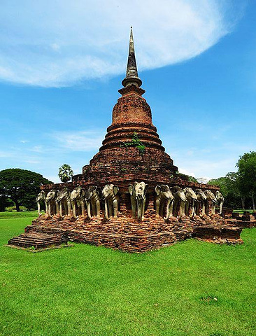 (泰语วัดช้างล้อม)顾名思义就是底座被36头大象围绕着。