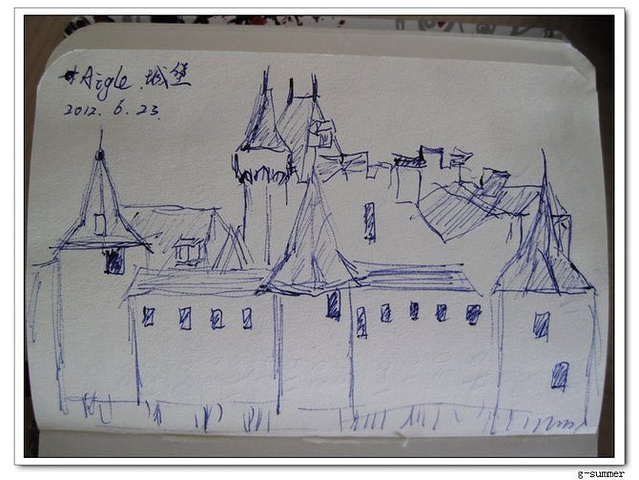 去哪儿用户2015-01-30《16天瑞士深度游——详细攻略【上】》中提到的 Aigle Castle 攻略艾格勒城堡的即兴素描(没有绘画基础,千万不要见笑。城堡周边是成片的葡萄园第一站:艾格勒城堡。 日光浴中的艾格勒城堡。艾格勒城堡的即兴素描(没有绘画基础,千万不要见笑。)城堡周边是成片的葡萄园。来自游记16天瑞士深度游——详细攻略【上】
