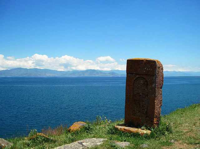 参观过Noratus墓地,就赶往下一处目的地,Hayravank修道院,也是座落在塞凡湖湖滨,在湖的东南方,整个这座建筑包括9世纪修建的教堂正殿,10世纪添加的一座chapel,以及12世纪在正殿以西添加的Gavit大殿。教堂周围遗留有大量十字架石碑Khachkars,以及一处小型墓园。教堂各处修补的痕迹明显,据说尖顶曾经彻底坍塌,最近才修复的。除了看教堂本身,在周围转转,看湖景也不错,爬上教堂对面的小山丘,可以看到教堂全景