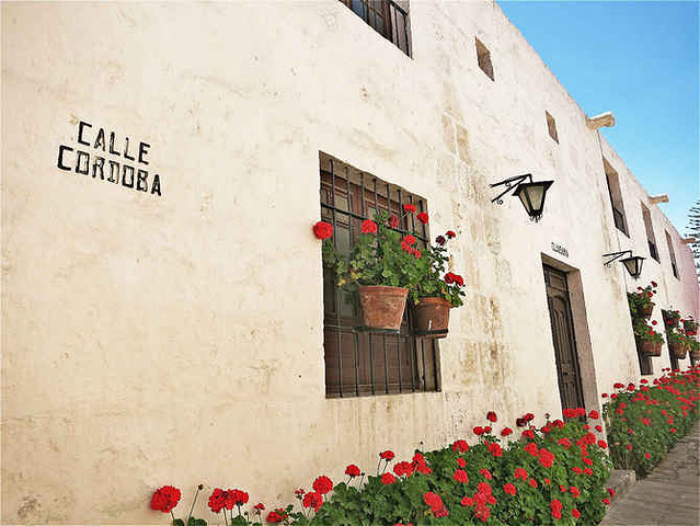 从naranjos庭院东南角出来,就到了Calle Cordova,这个两侧涂成白色种满献花的街道和更靠东的红色的Calle Toledo街道是连贯的,实际上组成了院落里最长的一条街。这个区域是古时修女的生活区。在17世纪后,这里的传统是每家的第二个孩子要成为修士、修女,将一生贡献给天主。但这个Santa Catalina修道院走上层路线,只收arequipa大户人家的女儿,并且要带着“入盟费”前来,费用大约2400个银币,折合今天大约150000美元,于是当时地方上的土豪纷纷携女涌来,以加入这个修道院来显示势力。