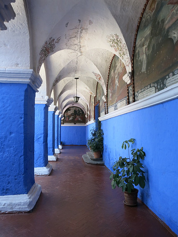 这里有西语、英语的讲解员,英文的20sol/小时,我请了一个位,给我讲讲,更主要是沿途帮我拍照。于是就随着她沿着景点地图上推荐的路线走了一圈。听她介绍,Santa Catalina修道院属于多明我会修女团,在1579年由一位富裕的孀妇Maria de Guzman在阿雷基帕古城内建立,两万平方米面积,以强烈的摩尔风格修建,从建立之后不久就成了全城最著名的地方