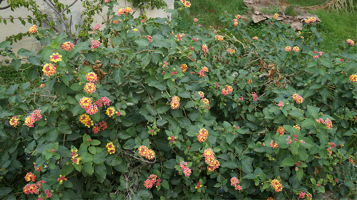 玻璃厂边上不知道为什么会有只大猫的雕像,这个还挺好玩。玻璃厂门口的绿化真是没得说