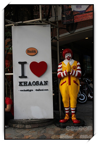 从大城回来之后,离晚上赶火车的时间还早。去见识了一下闻名天下的背包客圣地:考山路。 我和老妈去了之后大呼过瘾,真是个吃喝玩乐的天堂,只可惜我们时间太赶,没能好好享受,直接上图,看图说话: