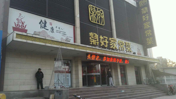 很不错的一家家常菜酒店。规模不小,鲁菜为主,九转大肠,大酱骨,酸菜鱼,拉皮等等都有。酒店宗旨,推崇健康饮食!当然所有的酒店包括其他个人也都是这个理念!。东北菜,川菜也有。整体来说挺全,在济南有好几个店,这家店在经一路延长线和纬二路交口,天桥南附近,路南。离火车站,大观园都很近,交通便利,位置优越。 门店和周围几个店比算大的了。大酱骨和九转大肠是招牌菜,的确不错!,大骨头吃肉吸骨髓是清汤清肉,鼎好家的酱油做法,骨髓有点少,囗味还算不错。盘丝卷有奶香,能拉丝超级推荐。菜也是倡导少油少盐版的。吃起来不是那么油腻。健康饮食。!价格挺实惠,四五十元人均就吃的挺好,量也足,整体来说是一家很不错的家常菜馆,规模,店面,聚会,什么的也都够的上档次。!推荐。!