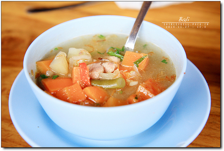 以前的游记很少有人提到巴厘岛的这种蔬菜汤,我们这次也是误打误撞的尝了,非常好吃,汤很鲜美,里面还有一些猪肉和蔬菜。自此以后我们看到蔬菜汤都会点了。