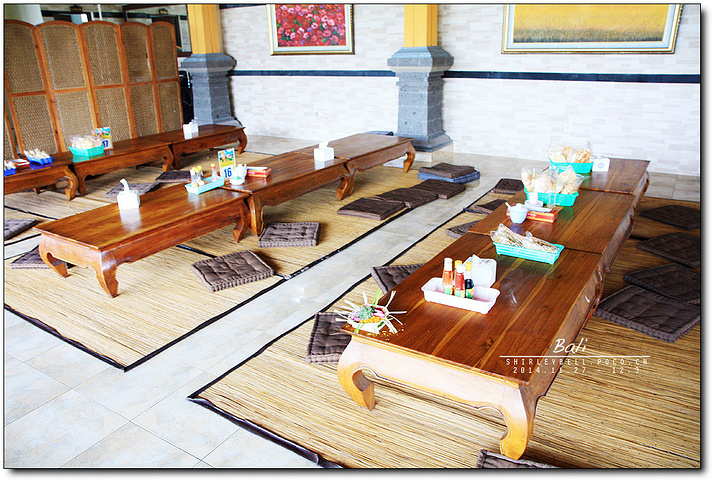 我们选择了二楼的巴厘式桌子,盘腿席地而坐,入乡随俗一把。也挺有意思的。