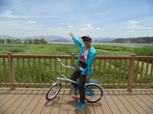 回去补个觉,然后吃过早餐,租龙哥的两辆自行车去骑行洱海,听说前几天有驴友环行洱海折腾了一天,累得半死说这辈子再也不环行洱海了,龙哥也不建议我们环行,所以我们计划只骑行一段路就返回来,于是慢慢悠悠顺路骑下去了,往下关方向,边玩边拍照,各种拍,骑行的感觉灰常好。走到下关看到了洱海月的石头,据说大理风花雪月,下关风上关花苍山雪洱海月,下关果然风大,洱海不到晚上看不到月亮,苍山估计这季节也木有雪了,就想去上关看花,于是问路上关在哪边,不想一哥们居然说这里木有上关,只是个说法,我们晕了,不大信回头又问,才知道上关在洱海的另一边,估计去不了了。骑到下午一两点,骑过了下关,白吃突然头脑发昏要骑车环完洱海,我坚决不同意,说晚上骑不回来,白吃坚决要骑,最后谁也说服不了谁,最后俩人分开了,相机给他,他继续骑行,我绕城里换路返回,骑着骑着有点心情低落,刚开始就闹分歧,不过也木有办法,都要走自己选择的路。