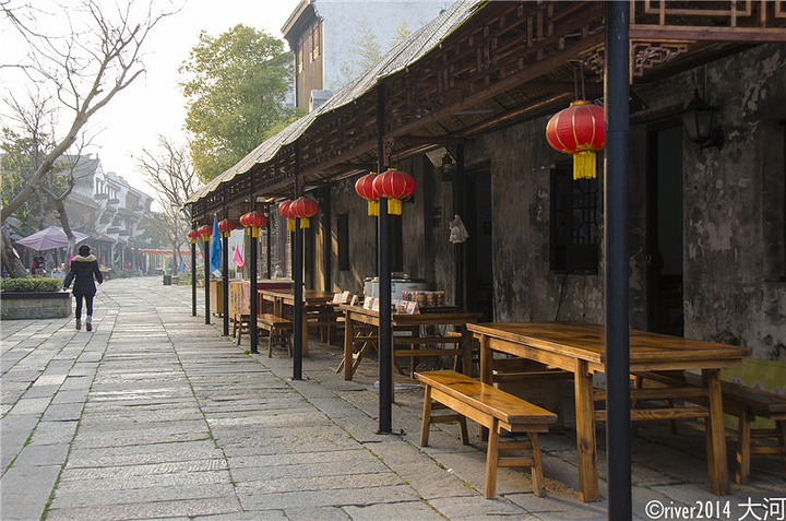 从嘉兴火车站或者嘉兴南站(高铁站)都可以乘坐公交车直达梅花洲景区。这个景区位于嘉兴城南,比我想象的要远一些,但是游客不多。 进入景区后,发现这里还分为好几个小景区,有古镇老街,寺庙,有水果采摘也有拓展基地,但是总的来看游客并不多。刚进门就是一大片柚子树,黄黄的柚子正好成熟了,挂在树上非常漂亮,旁边是拓展训练基地,我们直奔古镇老街区域,大街上挂了一片红灯笼,路边两侧是江南水乡的老房子,但应该是新建的,沿街的房子几乎都是商铺,路边摆放着几个小吃摊位,臭豆腐到处都是。继续向前还有几家小餐馆,景区内吃饭不成问题。一些大宅院可以进去参观,了解当地文化。过了河就是一座寺庙,但是没有院墙,寺内的千年银杏树高大粗壮,及座小桥秀美灵动很有意思。不过景区大街上的商铺在下午5点就歇业了,晚上没什么风景可看。