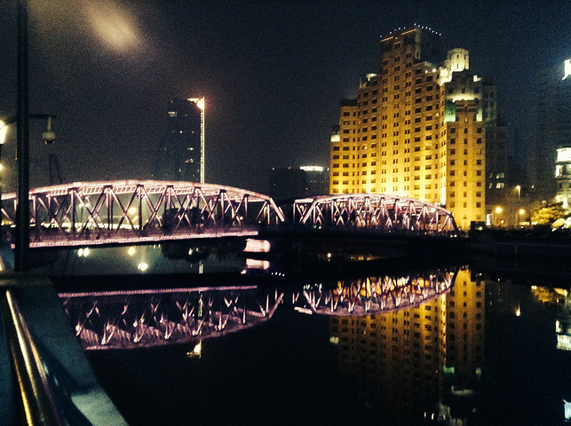 第一次知道外白渡桥是因为情深深雨蒙蒙,依萍从外白渡桥上跳下。还有好多讲述老上海故事的影视作品里面都出现外白渡桥,印象里外白渡桥算是就上海的标志之一。前几天报道还说外白渡桥上多了很多同心锁。 外白渡桥至今已经有一百多年的历史了,在现代技术的支持下现在还安装了城市之光的灯光系统,有很多种颜色间隔变化非常的漂亮。外白渡桥就在外滩的尽头,跨越黄浦江连接着两岸。很多情侣因为美好的爱情故事都选择在外白渡桥、背靠黄浦江拍着合影。因为上海的中心在这里,桥对面虽不及外滩,但也非常漂亮。外白渡桥这里因为控制交通所以公交车站会比较远,停车的规则好像也比较严格,所以乘公交或者打车都要走得稍微远点儿。上海这个大都市物价的确高哈哈打车比大连还贵一些。