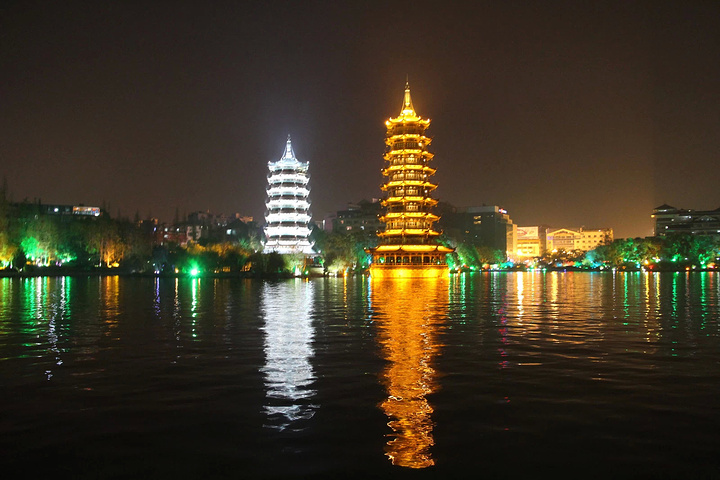 两江四湖是桂林非常有特色的一个景点,首先两江代表的是:漓江和桃花江.四湖是:杉湖,榕湖,桂湖和木龙湖.交通:如果是到桂林旅游的朋友可以乘坐99路或者100路的公交车到达乐群路口,在这里下车后距离两江四湖步行就很近了.美食:两江四湖旁边就是桂林非常出名的正阳步行街,这里有非常多的美食,可以解决吃饭问题.两江四湖的门票:网上团购的价格也是在158元左右,我出行的时间选择的是晚上,也没有乘坐船,因为我觉得沿着路边走着看两江四湖的景色,会更加美丽.在这里个人建议,两江四湖最好是晚上去观看,因为晚上看的时候景色非常的美,很多景灯都打开.但是沿着湖边走的话会稍微有一些凉,建议带件外套,以免感冒.关于住宿:两江四湖旁边就有很多的酒店和青旅,让大家会有更多的选择性,距离象鼻山和靖江王府也很近!