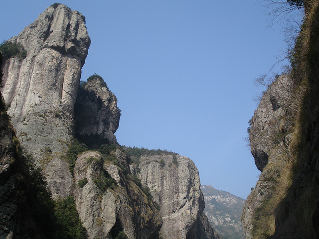 “欲穷雁荡之胜,非飞仙不能!” 雁荡山因徐霞客而闻名天下,却未能打动我。无论是朦胧夜景或是朗朗乾坤,实在是非我想象之能。在我看来一共就两石头,向前一步是一对男女深情相偎,往后一步是婀娜少妇翘首企盼,转过身是雄鹰,歪头看是蛤蟆。任我绞尽脑汁、冥思苦想,枉费导游循循善诱,在我面前就是一块不规则形状的地质岩浆生成的石头而已。小龙湫淅淅沥沥飘洒而下,大龙湫却吝啬得不肯赏脸给滴水珠。所谓“夜景销魂,日景耐看”,可惜我的想象力乏善可陈,如此艳福消受不了。从温州行车大约1个小时45分钟可到,一般为2日游行程,第一日先看夜景,第二日再看日景,爬山还是需要一定体力的,个人感觉和太姥山长的实在差不多,实在没体会到什么乐趣
