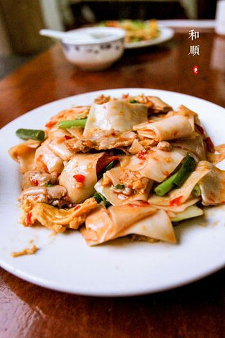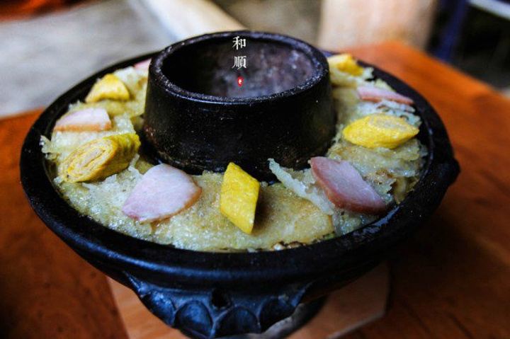 ①和顺古镇里面吃的不多且贵,而且大部分都是千篇一律:大救驾,土锅子一类。 ②你可以选择在客栈老板家搭伙,一般一顿饭¥20/人就能吃得很舒服了。 —————————————————————————— 这家的大救驾很不错,¥20/份。 其实就是烩面块,不过这个是饵块,各种新鲜食材炒在一起太舒服了!
