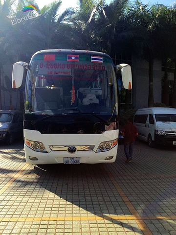 老挝过境的旅游车。