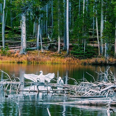 D12 周二/9.30黄石国家公园 酒店:OLD OFAITH INN 一早起来 还是没有晴天, 今天准备入住老忠实酒店, 行程比较轻松,中间还去了Ice Lake, 遇到2只天鹅.路上还遇到了狐狸