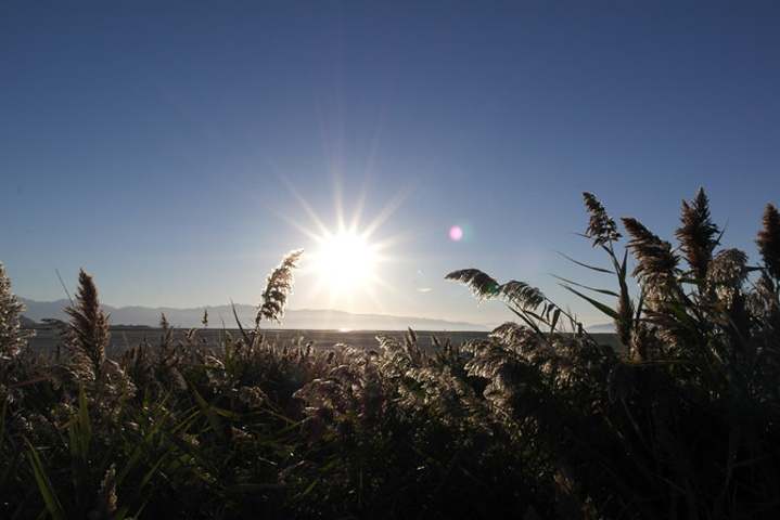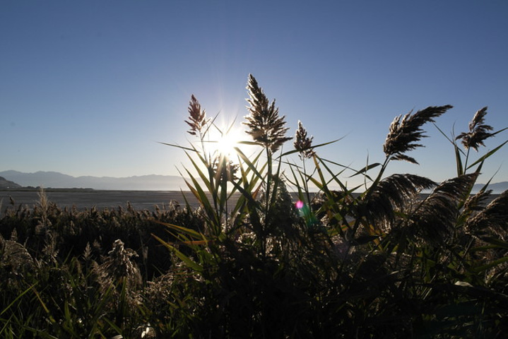宽广的湖岸线外缘有一片芦苇很多摄影艺术家都是选取这个创作的,看看我的作品如何?