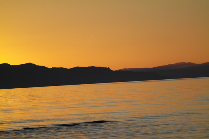 去往大盐湖的高速公路80,我想说真是太直了,你当我们的车子是高铁吗 大盐湖从谷歌地图上看,面积是非常巨大的,甚至可以装下两个盐湖城市区。我脑海里想象中的大盐湖应该湖边满是结晶的盐分吧 达到大盐湖的时候,太阳已经快要下山了