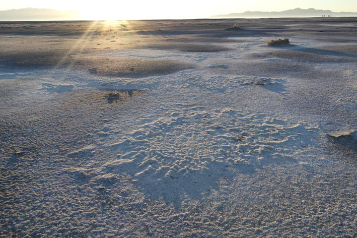 湖边的滩涂没有太多的惊喜,微微白色就是析出的盐份。之前我也已经说过,未到大盐湖,我脑海想象出的是湖边厚厚的白盐,实际上只是普通的滩涂,白色并不明显 来一张盐份的特写