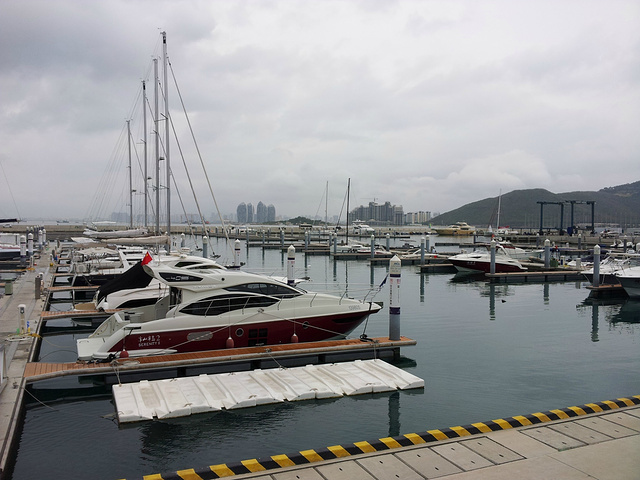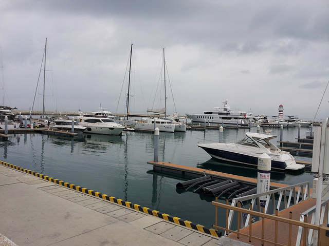 第三天的行程是去鹿回头和大东海以及亚龙湾。到鹿回头后大概看了一下,要爬山,景色一般还收门票,就没进去,车继续往前开找我向往的海滩,结果找到了一片土豪的游艇停放地!景色还不错,出来见世面了,知道中国的土豪有多豪了。