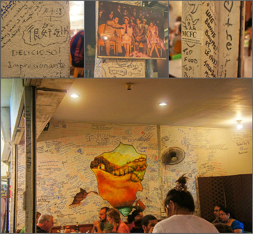 餐厅内墙上的涂鸦,食客留下的笔迹。