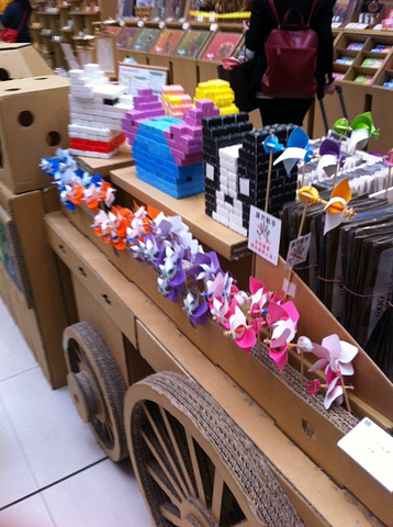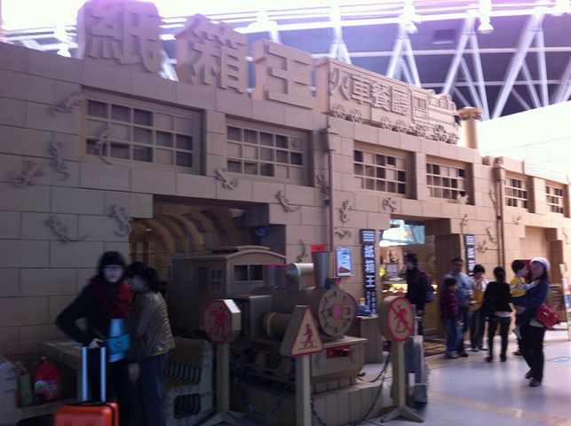 在高铁站走去台铁站经过纸箱王,结合以纸艺为主题的商店和餐厅和餐厅,里面的东西全是纸做的,好特别
