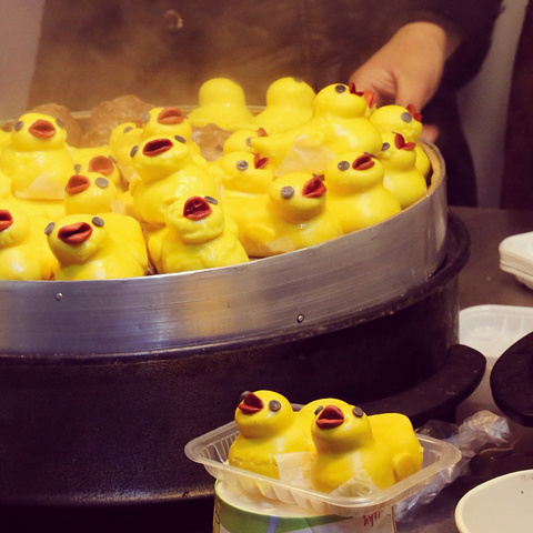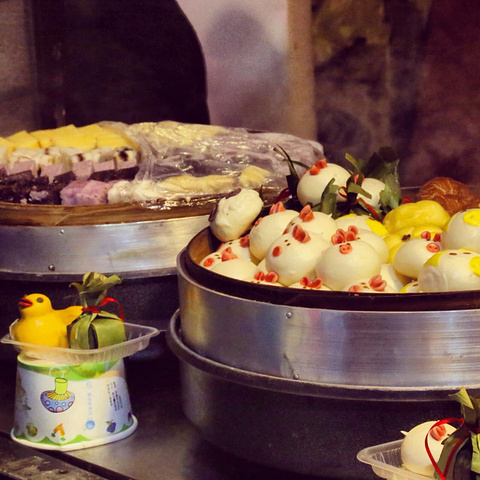小猪包子,很多家卖这个。旁边还有黄色的小猪。期待的眼神喏。江南人爱吃糕点,样子好看的糕点。
