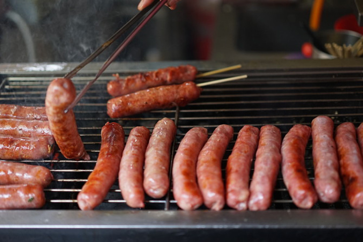 这家的烤肠,至少看起来还挺有食欲。诸君看到下图一排排炭火炉上的烤肠,没有流口水的……请面壁