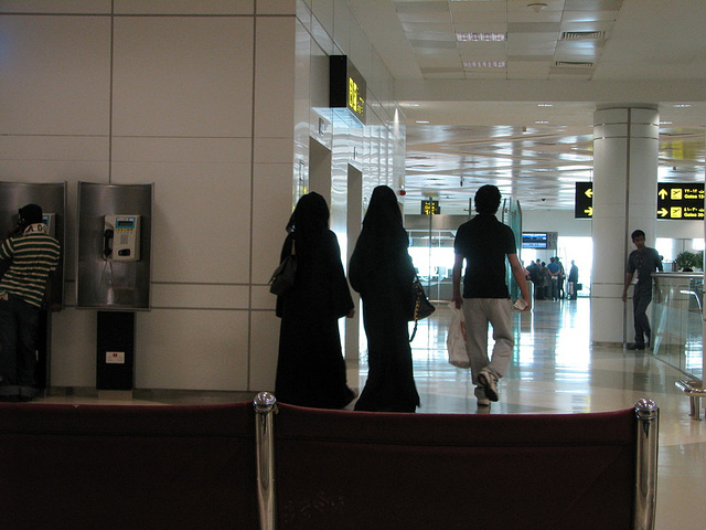 在多哈到处可以看到“全副武装”的妇女,这对是捂得最严的,眼睛都遮上了