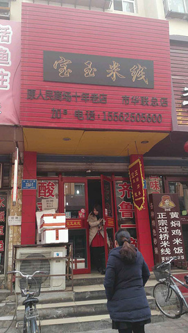看着挺古典的一个小店,主要是米线,米粉类的食物。还是个连锁经营店呢,在济南还有几个店面。这家在纬十一路内一个胡同内,靠近华联商厦和超市,来往人挺多的。可以团购, 我认为双人团购套餐最划算,两份米线,8个串,2厅饮料,吃的很饱。但串里的广式肠不是很新鲜,其余的还蛮好。 店里环境一般,但人依旧很多。宝玉米线依旧很特别,自制的酱,酱香味很浓郁,泡菜也很特别,额外单点一份泡菜加1块钱。还算一家挺有特色的米线店