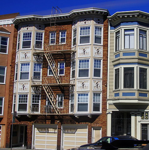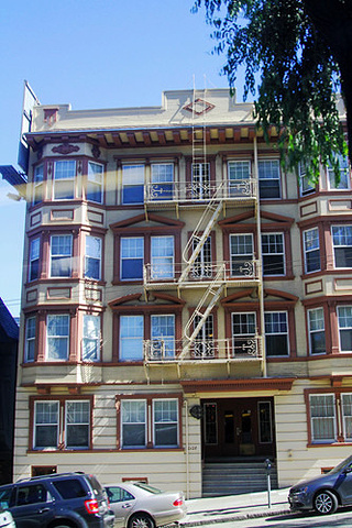 看完金门大桥大概下午2点左右,我们先回酒店,一方面我要赶回Nordstrom,买昨天看上的东西 ,一方面要先去把车提了,明天一早就出发斯坦福和一号公路了,正好,也可以再从总站坐铛铛车。 沿路看到的房子,都有直通房顶的户外楼梯,这是为了遇到突发事件后为了安全而设置的么