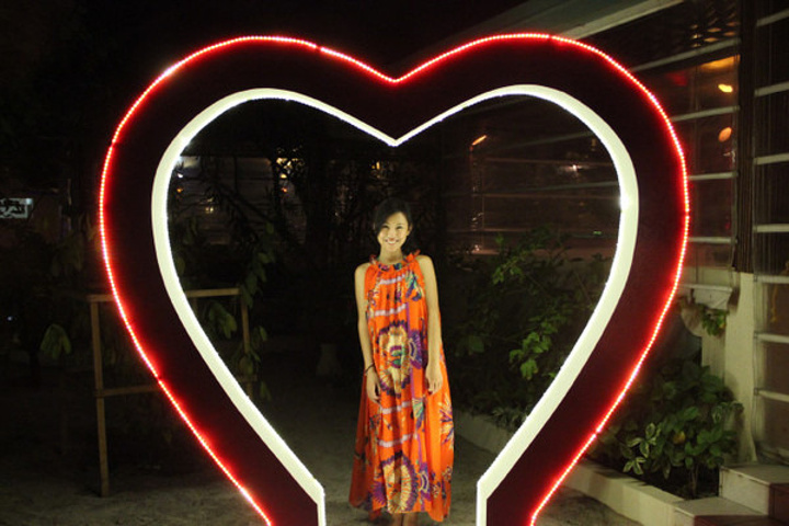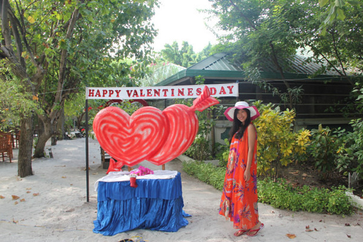 今天是情人节,也是我的生日。 早上六点多就睡不着了,出门在旁边的泳池坐了一会,眼看天色很快亮了起来。前一天跟台湾的小夫妻约好七点钟一起去沙滩拍婚纱照,于是回房间梳洗打扮,穿起婚纱来。 榆嫚他们住在海滩上的沙屋,我们一起在海滩拍了一个多小时的婚纱。景色真的很美! 八点半去餐厅吃早餐。这边的自助早餐种类没有梦幻岛多,但是也还不错。有免费的咖啡可以喝。吃完早餐大概九点多,准备去沙滩浮潜。 刚刚下海就惊呆了!白沙只有短短的距离,稍微远一点就是各种美丽的珊瑚,再就是各种美丽的鱼类!再往远处游一点,海水一下子深下去,像是悬崖一样,深不见底。美丽的鱼就在身边游来游去,穿梭在鱼群中,拿起相机随便按都可以拍到美丽的海鱼,这种感觉真的太美妙了! 准备下海咯~一大波水下照片袭来! 上午的阳光还是比较烈,回去之后不出所料又晒黑了一圈。下午四点钟,跟榆嫚他们约好去码头再拍婚纱,还借了榆嫚的婚纱来穿。互相拍婚纱照效率高又欢乐多,拍过了码头跟拖尾沙滩,还拍到了美丽的夕阳。 2月14日,这一天情人节,也是我的生日。岛上已经在各处布置了节日的装饰,蛮有浪漫的氛围的。 晚上七点钟,我们去沙滩享用酒店送的烛光晚餐。这一天又是元宵节,海上的月亮又圆又亮,我们的烛光晚餐就在海边布置。有点起一个个心形的灯光,沙滩上还挖了很多洞放着蜡烛。每桌上都有一只玫瑰花和一只蜡烛,坐在则例吹着海风,感觉超棒。服务生会一道一道的上菜品,过一阵子会过来收前一餐的盘子再继续上下一道。 我们点了两杯无酒精的鸡尾酒,陆续上了水果蔬菜沙拉、餐前面包、餐前汤,主菜是海鲜大餐,有各种鱼肉、虾、鱿鱼,还有一只完整的剥壳的大龙虾,超美味!最后是餐后甜点,一小块心形的蛋糕。服务生把菜品都上的很慢,大概整个过程有两个小时,让你好好享受这一顿烛光晚餐。 接下来惊喜的来了:在所有菜品结束之后,我们都准备离开了,服务生又端来一个超大的巧克力蛋糕!一边说着happybirthday,才知道是岛上给生日的客人送的生日蛋糕~上面还写着“happybday,pang”感觉超温馨! 蛋糕吃了一点点,准备离开了。服务生说可以带回房间用,我们端着给榆嫚他们送去品尝。他们说晚上在海边散步的时候在沙滩看到了传说中发光的菌类,我们也去海边找了,真的有看到!被海水冲上岸来的发着蓝色光芒的小点点,星星点点的停留在沙滩上,被海水冲一下就会更亮一下,很美!据说是马尔代夫比较少岛上才会有的景象,被我们看到了,感觉特别幸运。 回房间的路上听到mainbar那边有很大的音乐声,又忍不住去看了一下,这边晚上的情人节装饰都很漂亮,在树上挂了很多彩灯,还有各种爱心的灯光造型。Mainbar有在放欢快的舞曲,有不少客人在露台坐着喝东西,享受情人节的夜晚。 回到房间,又有惊喜:生日送了beddecoration,床上被摆放了美丽的花瓣造型,还有用叶子剪出的字母拼出的“happybday”,很漂亮! 这个生日过的很完美!