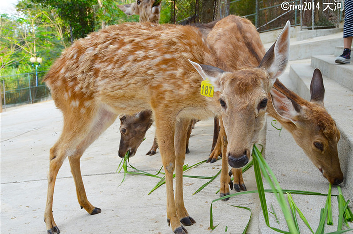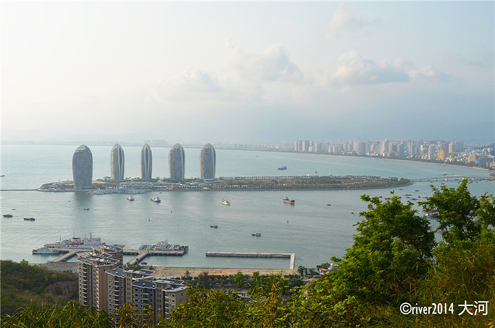 鹿回头公园”是海边的一座小山,可以观赏三亚市区全貌。我乘坐了3路到“鹿回头村”,发现不对,又乘坐了当地的三轮摩托车十几分钟才到公园门口。乘坐公交车到“鹿回头公园”站,22,26和29路都到。进入鹿回头公园,可以沿着台阶上山,也可以沿着公路上山。建议走公路,在路边有几个观景台可以欣赏三亚的海岸。也可以乘坐电瓶车上山。进来没多远就是鹿苑,免费开放,但是跟门口的管理员花5块钱买一把草可以进入到饲养场里喂鹿,跟鹿亲密接触。如果不买就只能在铁栏外观看。刚一进来就有好几头鹿围了上来,这里的鹿都很温顺,可以随意抚摸。公路上山途中就有几个观景平台,从这里看到三亚的山,海与城市。山顶上就是这一座鹿回头的雕像。鹿回头的传说也是一个爱情故事。传说海南当地的黎族小伙从五指山追逐一头小鹿,一直追到海边准备将其射杀,小鹿走投无路时变化成一个美丽少女,从而成就了一段美好的姻缘。鹿回头雕像旁边10块钱买个椰子,顺便休息一下。山顶上有一片美食广场,主要是招待晚上来游玩的旅游团。