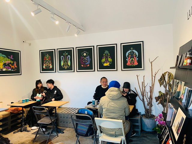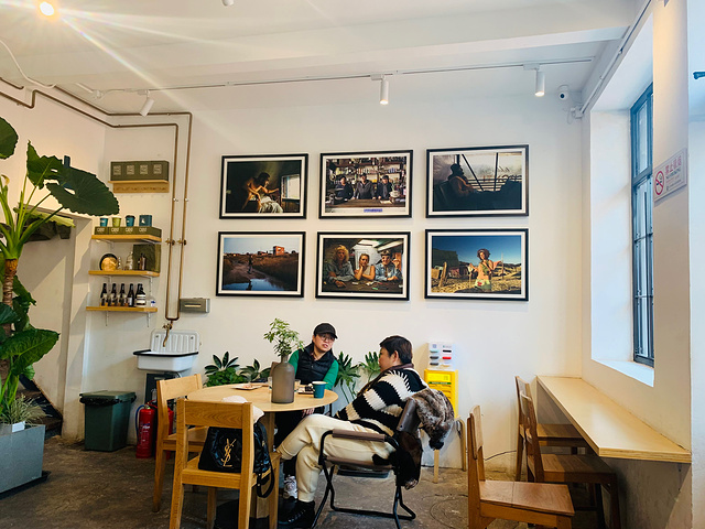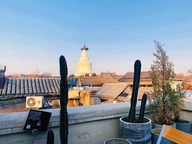 阜成门胡同里的网红店,跟朋友谈事儿选择到这家体验一番,之所以是网红店,除了本身的咖啡茶点外,2楼的露台风景是出彩的地方,白塔寺的白塔作为天然背景,搭配蓝天的映衬,成为很多人来这里打卡的必选。不过2月份去还是有些小冷,拍照可以在露台,喝咖啡聊天还是进室内吧。 🥂环境 这家店有2层,门面不算小,1层可以坐10来桌客人,2楼除了露台外,还有个小房间,能坐10来个客人。整个咖啡店挂满了艺术画和照片,配上绿植、书架、盆栽、瓶罐的装饰点缀,凸显浓厚的艺术气息。1楼走向2楼的台阶略窄而高,走到2楼的墙壁上有白塔和灯塔的壁画,东西方建筑的融合,让这家咖啡厅有了不一样的风采。 跟朋友点了2杯饮品,坐在2楼角落的茶座,优雅的环境使得每桌客人都会低声交谈,氛围拉满。天气再暖和一点,想必露台会很热闹,白塔+蓝天+绿植+一杯浓香的咖啡,成为这家店最主流的打卡图片。 💁服务 店员很热情,由于很多饮品都起得很梦幻的名字,无法直观的了解具体是什么味道,店员会很一一为我们说明,通向2楼的楼梯比较陡,店员也会温馨提醒我们要小心脚下。 📍位置+🚌交通 咖啡店在阜成门内大街宫门口东岔81号,其实就是进了胡同左手第一家。由于地处闹市区的胡同内,不建议自驾,地铁公交最方便,地铁到阜成门往东800米,门口公交也很多。