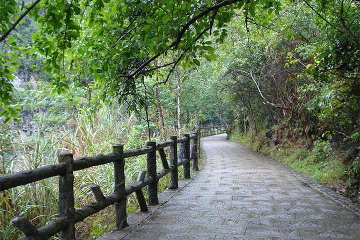 大七孔景区进门后是沿着栈道一直往前走,途径凯旋门、妖风洞、和恐怖峡。开放时间: 7:00-17:30