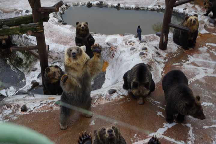 曾经流行过的“熊出没”系列产品就是来自于这里,登别熊牧场位于山顶,门票包括来回缆车。牧场内分为第一牧场,第二牧场和小熊牧场。园内售有熊饲料(胡罗卜),可对熊进行投饲,小熊会作揖伸手讨吃的,可爱极了。牧场内还有个展望台,天气好的时候,可以眺望到太平洋。 到达方式:在温泉街的案内观光所买门票,可以有折扣,2300元/人。同时他们会安排shuttle bus来接,直接送到缆车乘坐处,再乘缆车前往。游览后从可以从缆车站自行步行到温泉街。 开放时间:10月至次年1月8:30 15:20(最后售票时间) 16:00 票价:2592円(约150人民币);儿童半价;