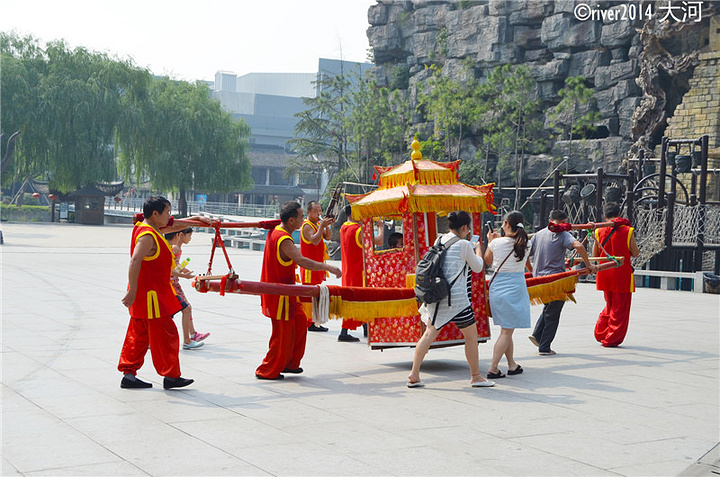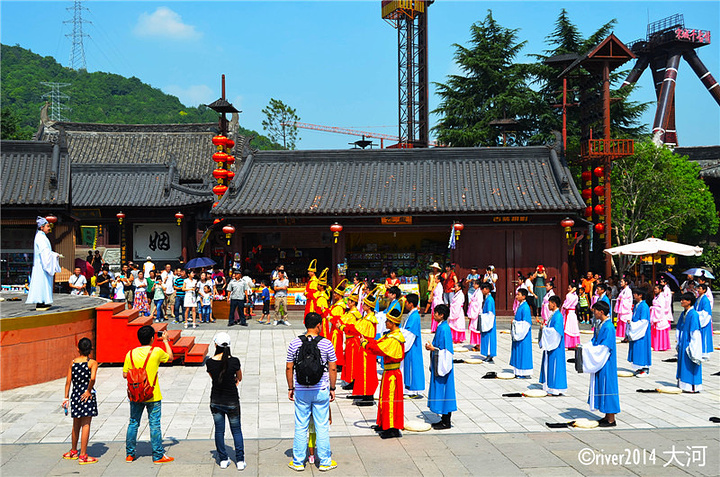 杭州的宋城是根据宋代清明上河图的描述加上水浒传的演义而兴建的一个旅游景点,位于杭州的钱塘江畔,从市区有多辆公交车前往。其中最值得一看的当属其大型歌舞表演,宋城千古情。 早上刚开门,游客很少,一些表演项目正在排练,这里正在表演成人典礼。宋城内有很多公共表演活动,会定时表演,不需要另购票。宋城古城部分最显眼的建筑则是城门,城门之上是宋皇宫,不过上去后发现就是个拍照的地方。全园区里人气最旺,动静最大的当属花轿迎亲活动,当场收费,游客坐在轿子里绕一圈。因为现场演奏喜庆的音乐,总能吸引游人。全园区里人气最旺,动静最大的当属这个花轿迎亲活动,当场收费,游客坐在轿子里绕一圈。因为现场演奏喜庆的音乐,总能吸引游人。宋城的一角是一片游乐区,在游乐场里见到的设施这里大多都有。 等到下午两点,宋城千古情的演出正式开始。容纳千人的大厅座无虚席。在宋城的门票里,其表演占80%。百余名演员的精彩演绎,完备的灯光舞美设计,精美的歌舞编排,这一台演出比春晚歌舞节目并不逊色。