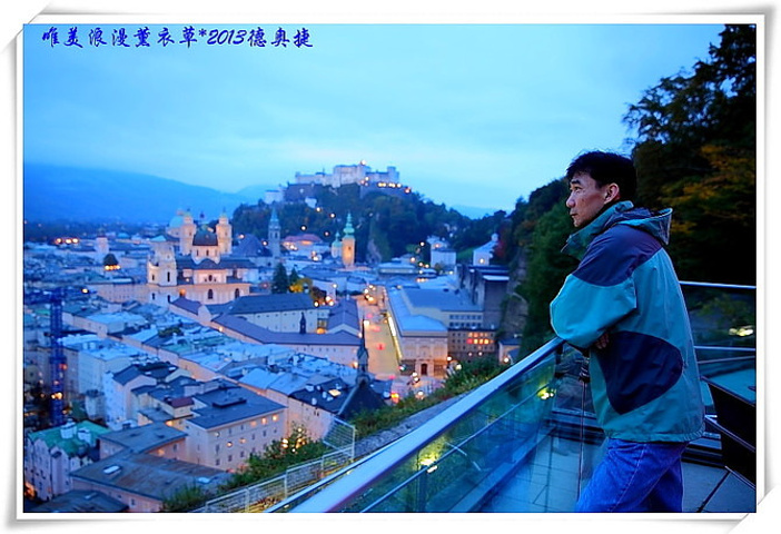 观景台上面有个漂亮餐厅,有室内室外两部分,占据着很好的地理位置,通常不消费是不让呆在露天餐厅的。我们在那等夜景,特意要了杯黑啤,然后踏实地想呆多久就呆多久。入夜,天很冷,啤酒更冰冷,我们几乎没怎么喝,就是摆样子了。