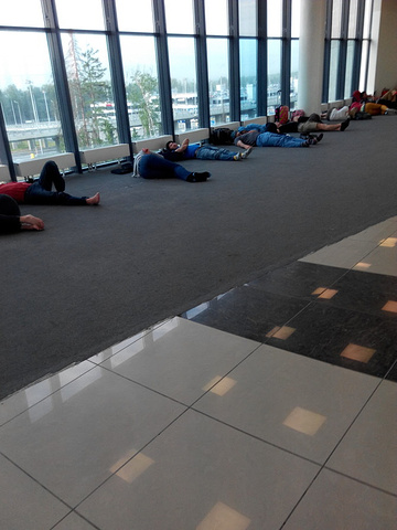 转机时间长的人就地卧倒睡觉,也挺舒服的。