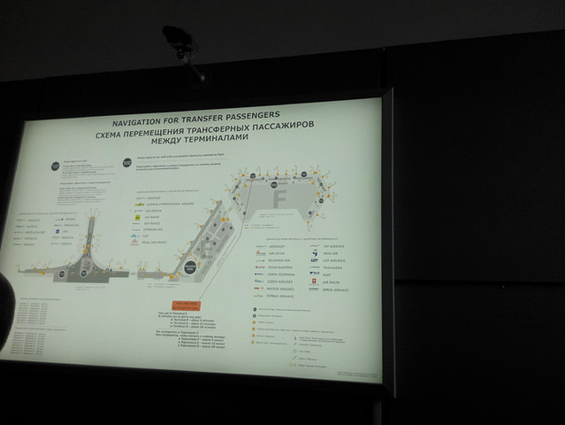 从北京到莫斯科俄航飞机机型是A330,飞行时间大约八小时,到达莫斯科谢列梅捷沃机场(Moscow Sheremetyevo Airport)的F航站楼,转机时间2小时,从F航站楼到D航站楼需要步行15分钟,转机的人很多,随着人流走。一般穿过脚腕的靴子或女士的坡跟鞋,都要脱鞋赤脚过安检,皮带也要脱掉,所以大家过安检时还有点狼狈。