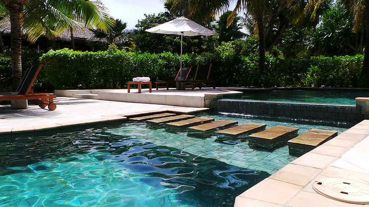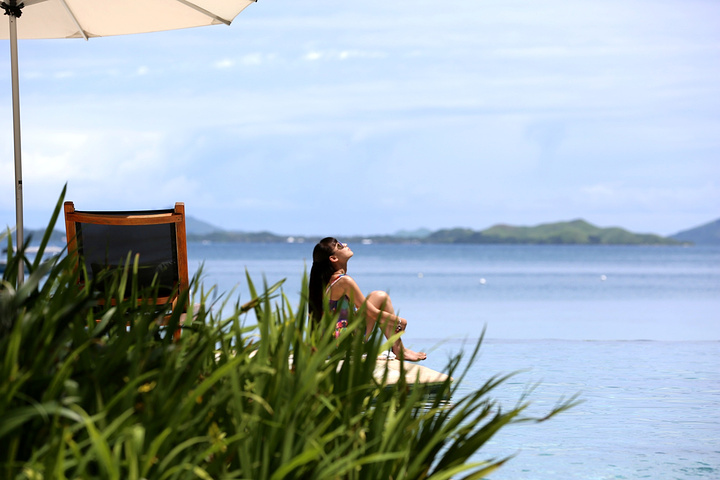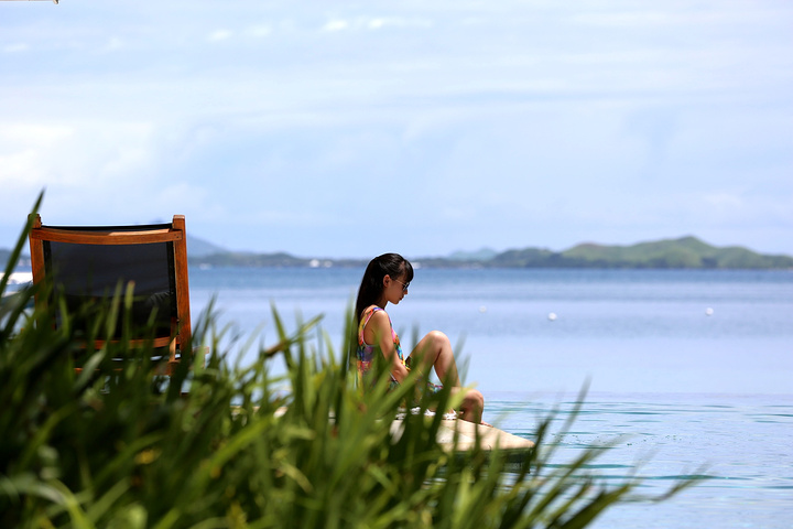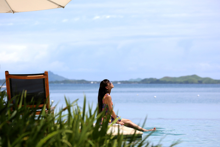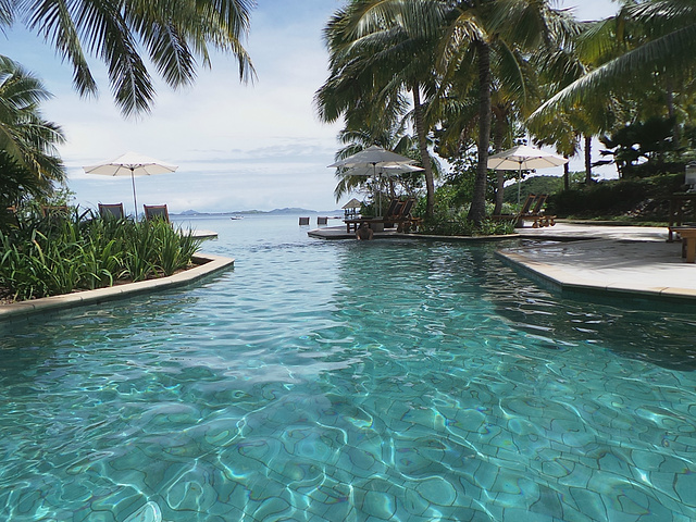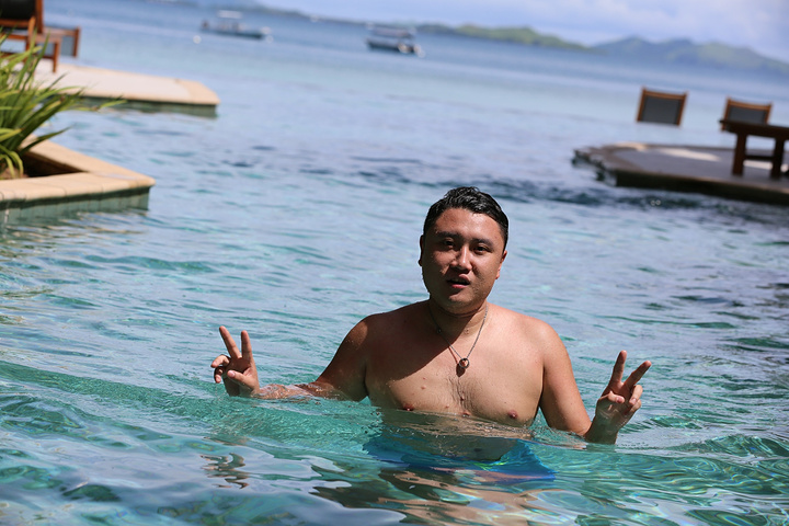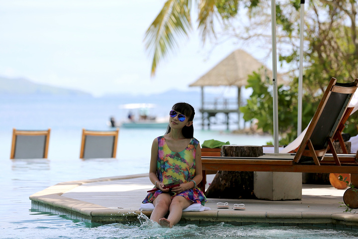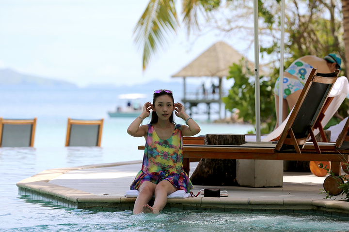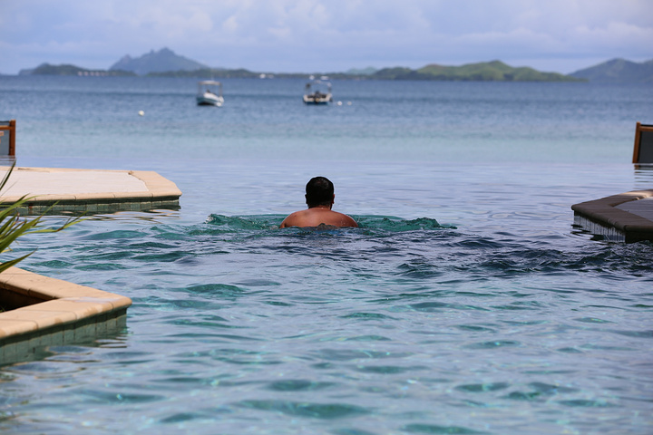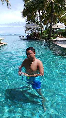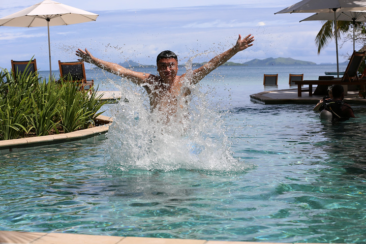 酒店的泳池是我们每天光顾最多的地方,因为斐济的退潮时间刚好是吃完早饭到要吃晚饭之间,所以实际上,退潮之后的大海并没有那么美丽,很多海草和珊瑚都露在了海面上,斐济是我去过这么多的海岛里退潮退的最彻底的一个,这也就是为什么我很庆幸当初没有定上水屋的原因。