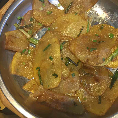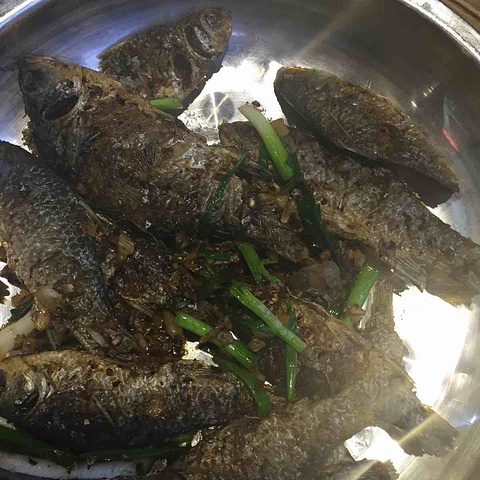 宰客的店,店看起来很大,特别贵,比后面的小店贵几倍,但是怕小店有地沟油,还是决定留下。贵就算了,没想到份量少得出奇,平锅沱江鱼,59元,开始问说是新鲜水煮,上桌来发现油炸,最多十条二寸的小鱼,拿个铁盆装着,就是平锅,平均6元一条~平锅土豆片,29元,铁盆装着,最多20片。清菜豆腐汤,29元,几块豆腐几片清莱,清彻见底,比沱江水清多了~~绝对宰你没商量。